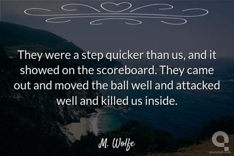 They were a step quicker than us, and it showed on the scoreboard. They came out and moved the ball well and attacked well and killed us inside.