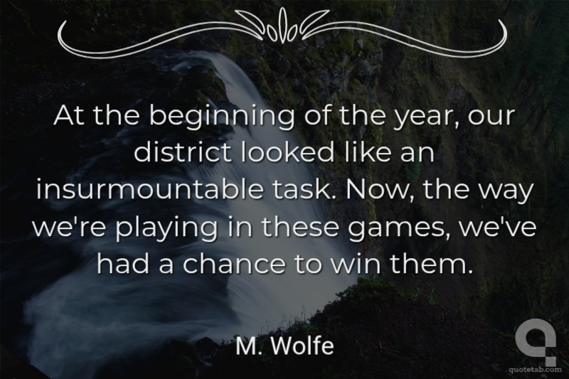 At the beginning of the year, our district looked like an insurmountable task. Now, the way we're playing in these games, we've had a chance to win them.