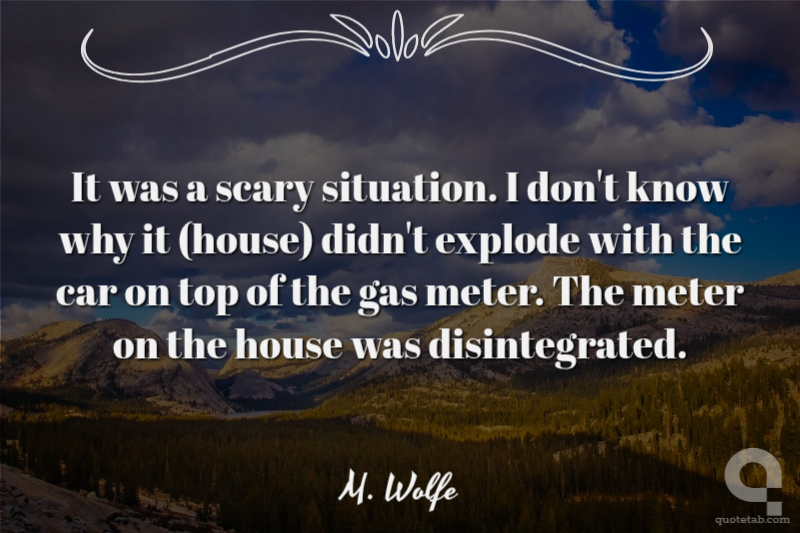 It was a scary situation. I don't know why it (house) didn't explode with the car on top of the gas meter. The meter on the house was disintegrated.