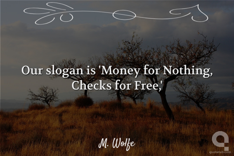 Our slogan is 'Money for Nothing, Checks for Free,'