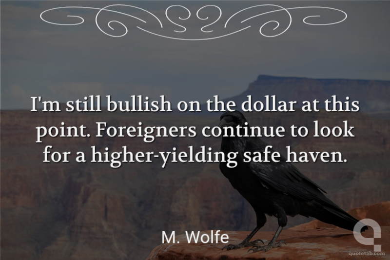 I'm still bullish on the dollar at this point. Foreigners continue to look for a higher-yielding safe haven.
