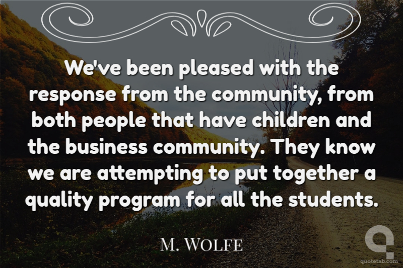 We've been pleased with the response from the community, from both people that have children and the business community. They know we are attempting to put together a quality program for all the students.