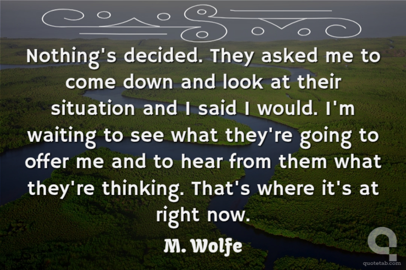 Nothing's decided. They asked me to come down and look at their situation and I said I would. I'm waiting to see what they're going to offer me and to hear from them what they're thinking. That's where it's at right now.