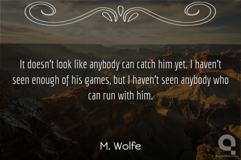 It doesn't look like anybody can catch him yet. I haven't seen enough of his games, but I haven't seen anybody who can run with him.