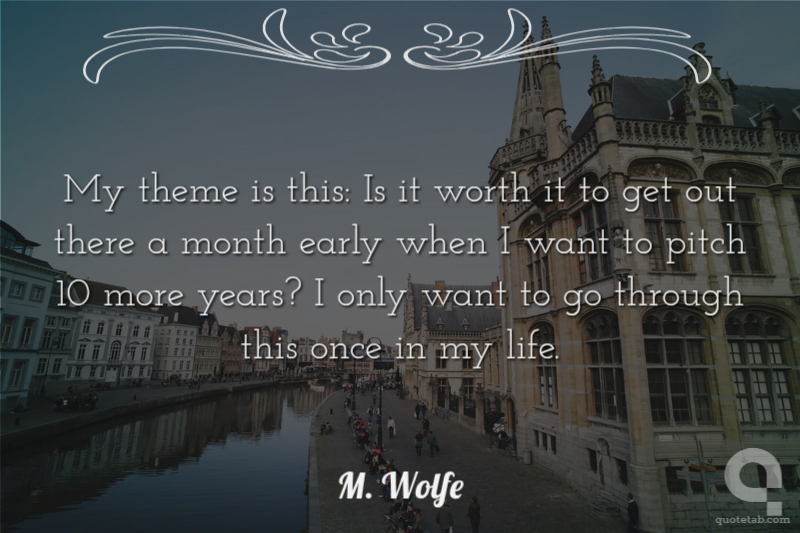 My theme is this: Is it worth it to get out there a month early when I want to pitch 10 more years? I only want to go through this once in my life.