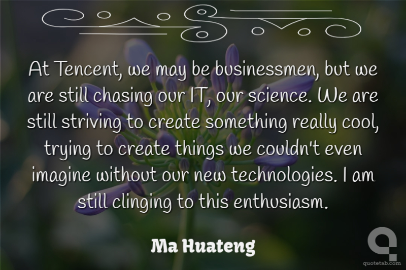 At Tencent, we may be businessmen, but we are still chasing our IT, our science. We are still striving to create something really cool, trying to create things we couldn't even imagine without our new technologies. I am still clinging to this enthusiasm.