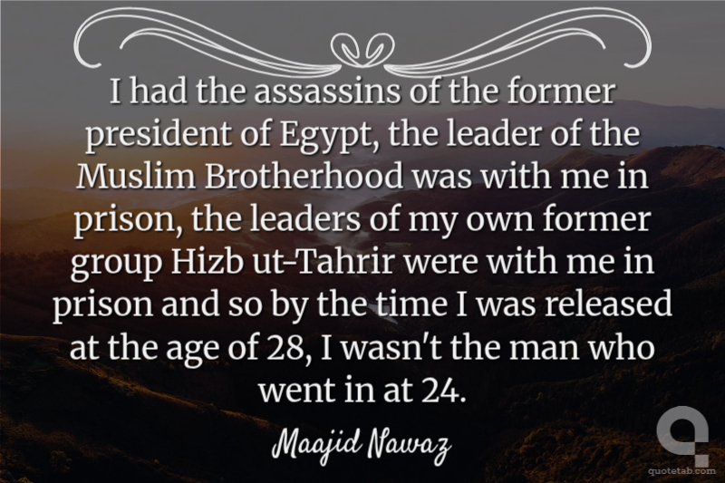 I had the assassins of the former president of Egypt, the leader of the Muslim Brotherhood was with me in prison, the leaders of my own former group Hizb ut-Tahrir were with me in prison and so by the time I was released at the age of 28, I wasn't the man who went in at 24.