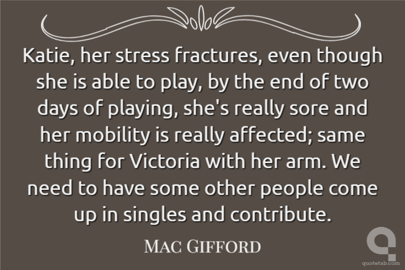 Katie, her stress fractures, even though she is able to play, by the end of two days of playing, she's really sore and her mobility is really affected; same thing for Victoria with her arm. We need to have some other people come up in singles and contribute.