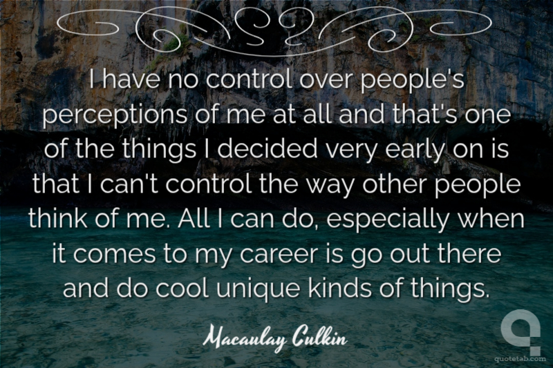 I have no control over people's perceptions of me at all and that's one of the things I decided very early on is that I can't control the way other people think of me. All I can do, especially when it comes to my career is go out there and do cool unique kinds of things.