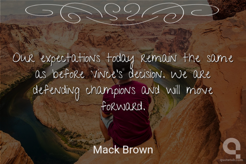 Our expectations today remain the same as before Vince's decision. We are defending champions and will move forward.