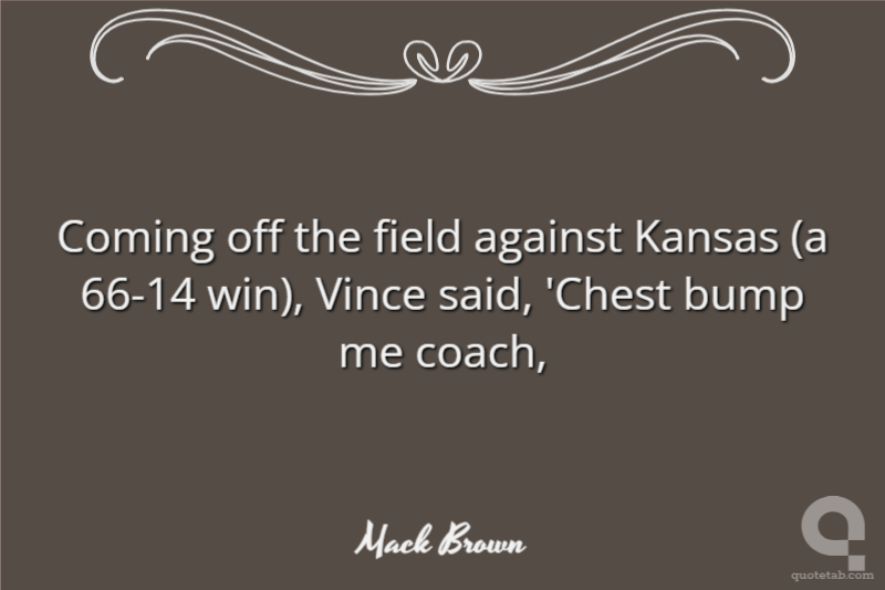 Coming off the field against Kansas (a 66-14 win), Vince said, 'Chest bump me coach,