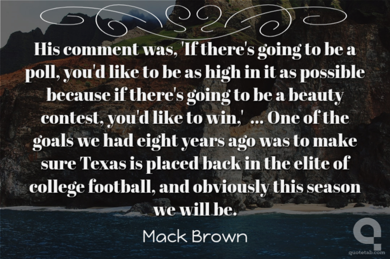 His comment was, 'If there's going to be a poll, you'd like to be as high in it as possible because if there's going to be a beauty contest, you'd like to win,' ... One of the goals we had eight years ago was to make sure Texas is placed back in the elite of college football, and obviously this season we will be.