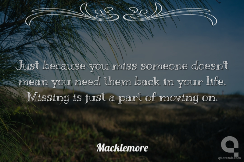 Just because you miss someone doesn't mean you need them back in your life. Missing is just a part of moving on.