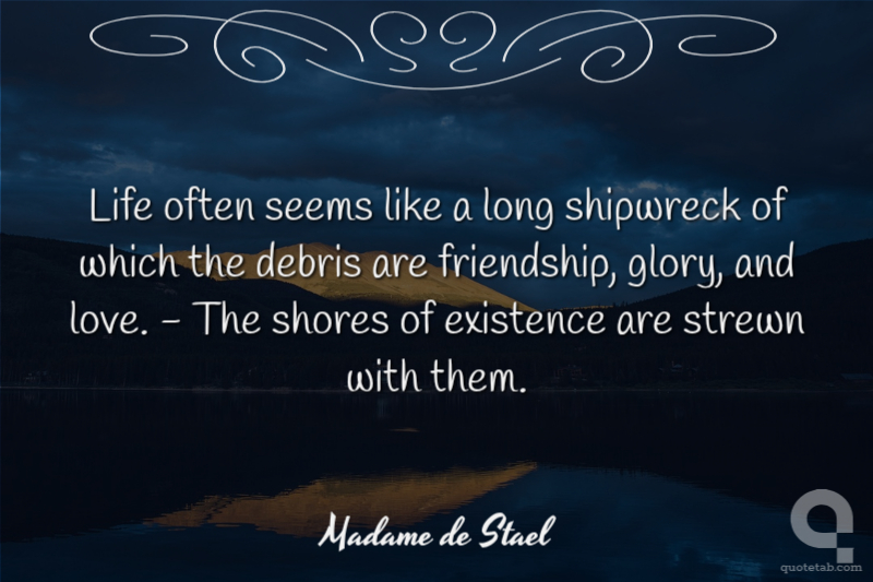Life often seems like a long shipwreck of which the debris are friendship, glory, and love. - The shores of existence are strewn with them.
