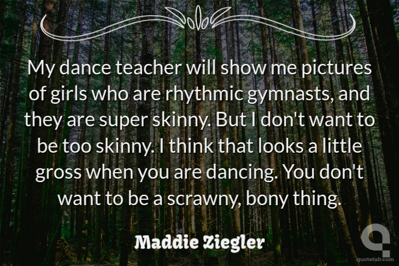 My dance teacher will show me pictures of girls who are rhythmic gymnasts, and they are super skinny. But I don't want to be too skinny. I think that looks a little gross when you are dancing. You don't want to be a scrawny, bony thing.