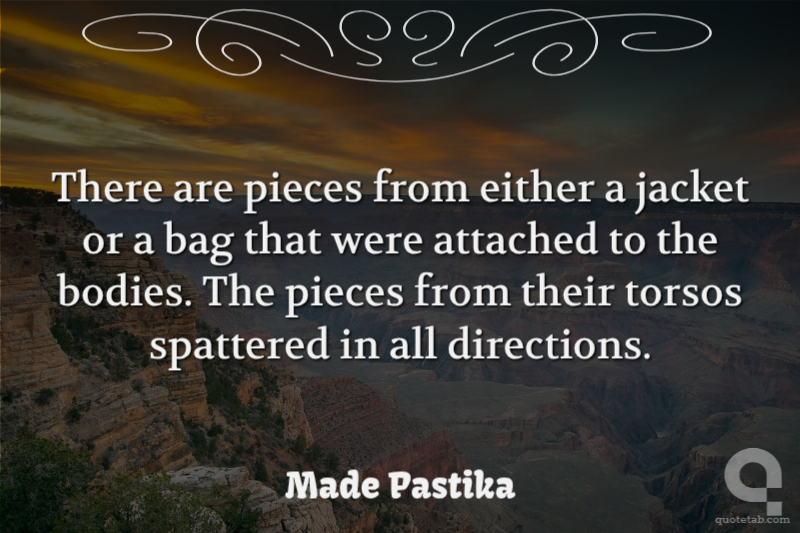 There are pieces from either a jacket or a bag that were attached to the bodies. The pieces from their torsos spattered in all directions.