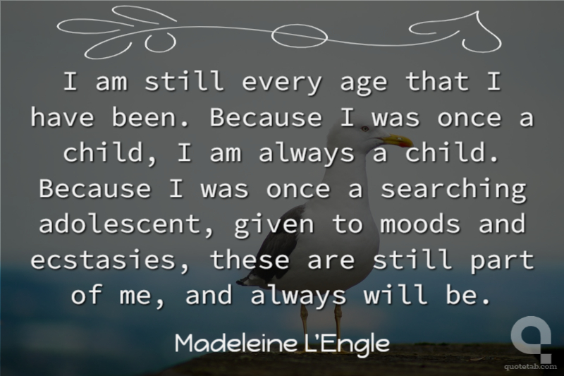 I am still every age that I have been. Because I was once a child, I am always a child. Because I was once a searching adolescent, given to moods and ecstasies, these are still part of me, and always will be.
