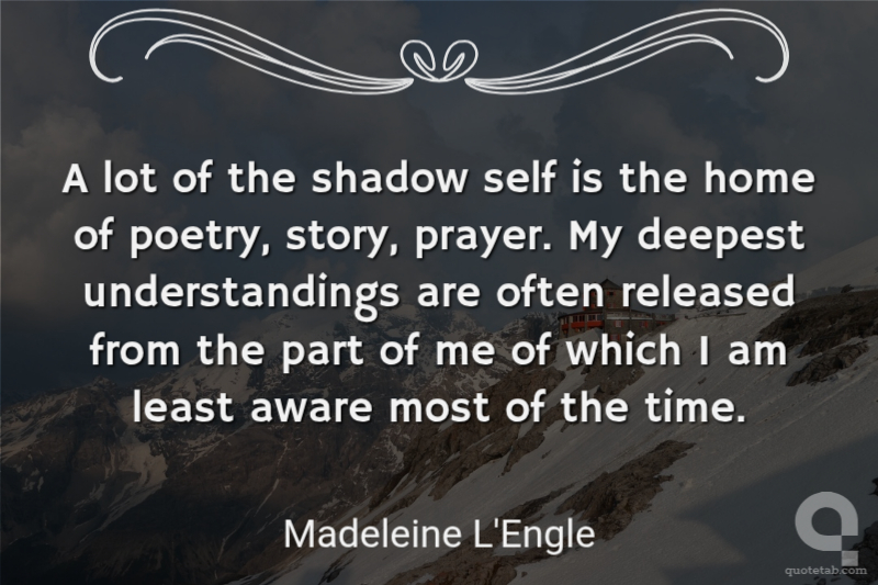 A lot of the shadow self is the home of poetry, story, prayer. My deepest understandings are often released from the part of me of which I am least aware most of the time.