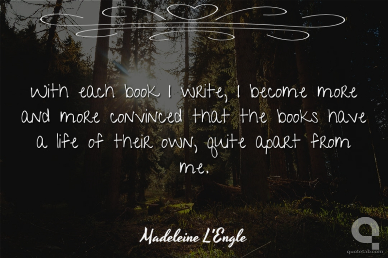 With each book I write, I become more and more convinced that the books have a life of their own, quite apart from me.