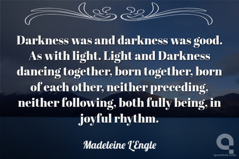 Darkness was and darkness was good. As with light. Light and Darkness dancing together, born together, born of each other, neither preceding, neither following, both fully being, in joyful rhythm.