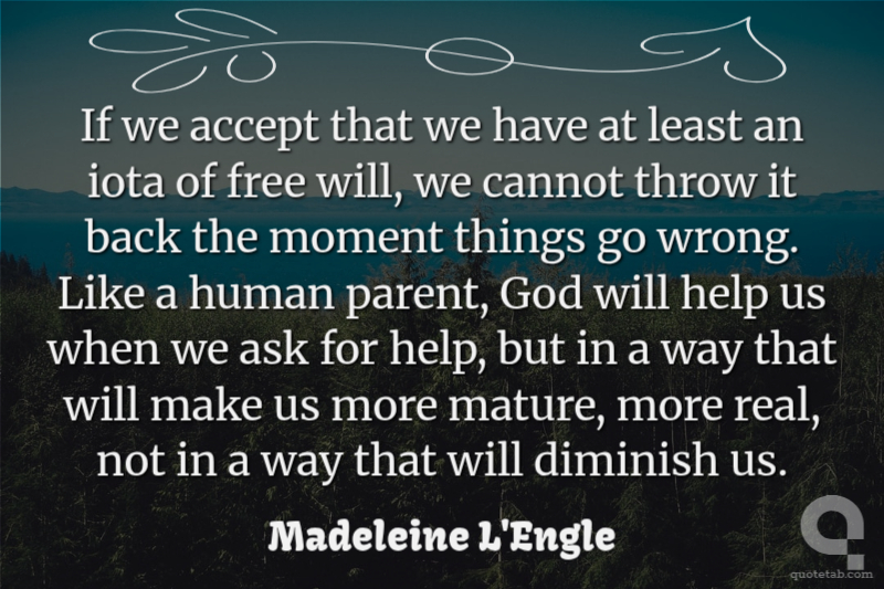 If we accept that we have at least an iota of free will, we cannot throw it back the moment things go wrong. Like a human parent, God will help us when we ask for help, but in a way that will make us more mature, more real, not in a way that will diminish us.