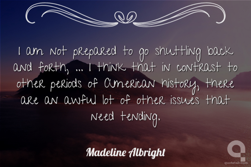 I am not prepared to go shuttling back and forth, ... I think that in contrast to other periods of American history, there are an awful lot of other issues that need tending.