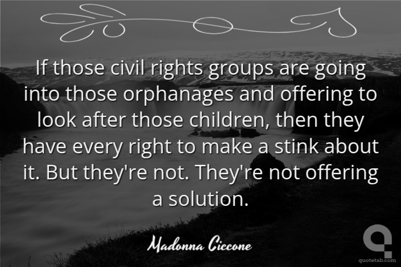 If those civil rights groups are going into those orphanages and offering to look after those children, then they have every right to make a stink about it. But they're not. They're not offering a solution.