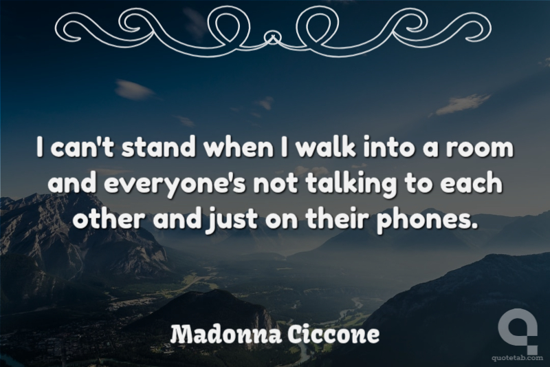 I can't stand when I walk into a room and everyone's not talking to each other and just on their phones.