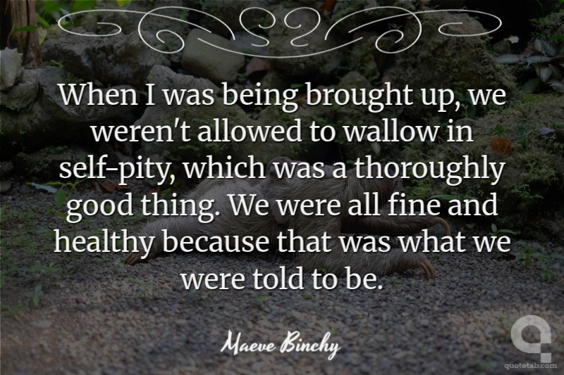 When I was being brought up, we weren't allowed to wallow in self-pity, which was a thoroughly good thing. We were all fine and healthy because that was what we were told to be.