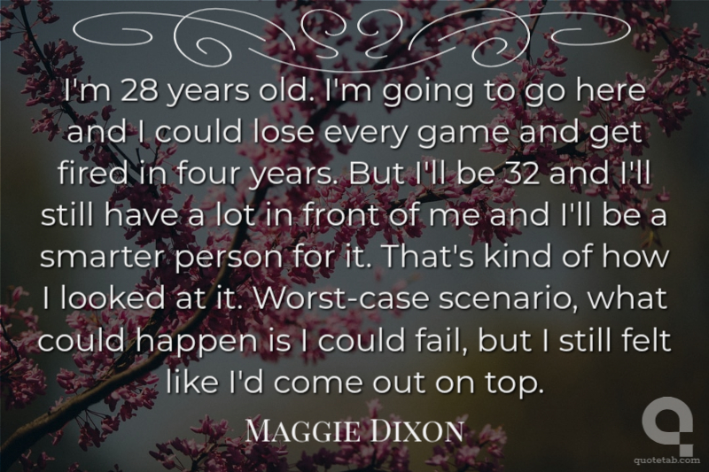 I'm 28 years old. I'm going to go here and I could lose every game and get fired in four years. But I'll be 32 and I'll still have a lot in front of me and I'll be a smarter person for it. That's kind of how I looked at it. Worst-case scenario, what could happen is I could fail, but I still felt like I'd come out on top.