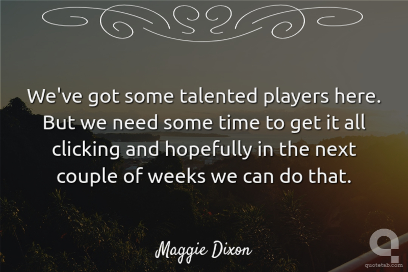 We've got some talented players here. But we need some time to get it all clicking and hopefully in the next couple of weeks we can do that.
