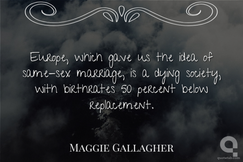 Europe, which gave us the idea of same-sex marriage, is a dying society, with birthrates 50 percent below replacement.