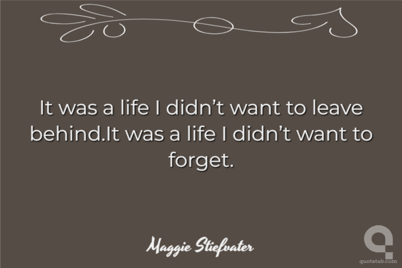 It was a life I didn’t want to leave behind.It was a life I didn’t want to forget.