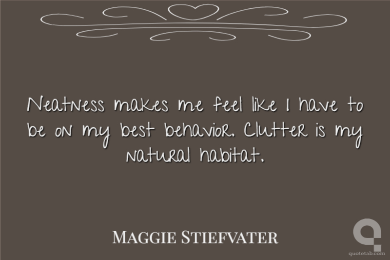 Neatness makes me feel like I have to be on my best behavior. Clutter is my natural habitat.