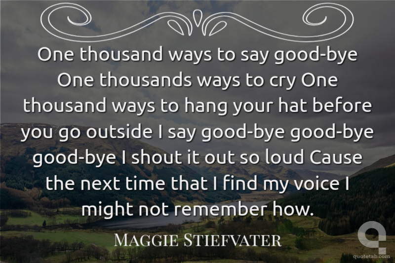 One thousand ways to say good-bye One thousands ways to cry One thousand ways to hang your hat before you go outside I say good-bye good-bye good-bye I shout it out so loud Cause the next time that I find my voice I might not remember how.