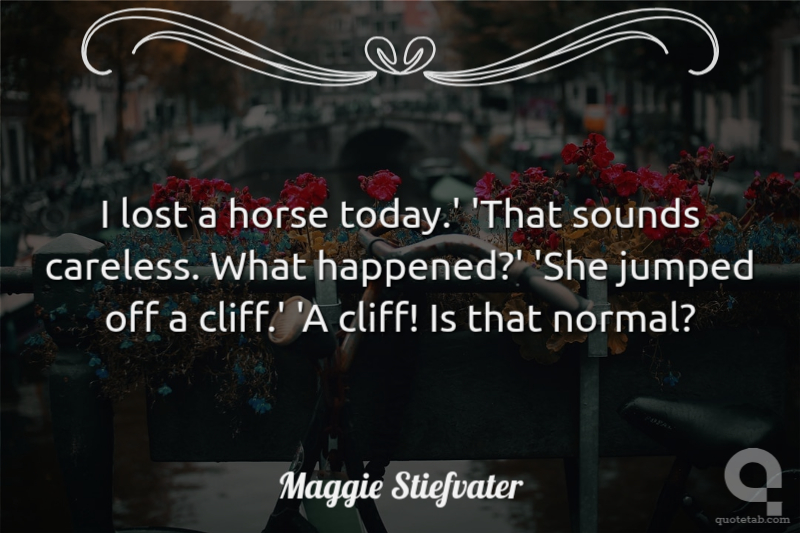 I lost a horse today.' 'That sounds careless. What happened?' 'She jumped off a cliff.' 'A cliff! Is that normal?