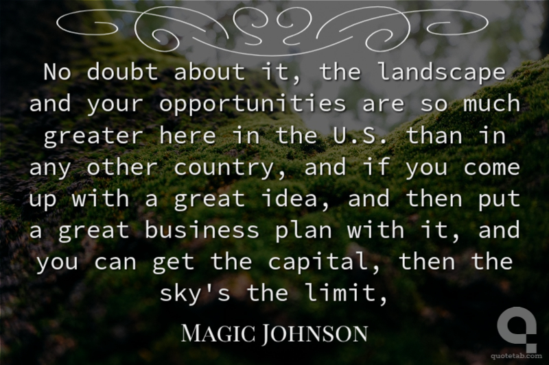 No doubt about it, the landscape and your opportunities are so much greater here in the U.S. than in any other country, and if you come up with a great idea, and then put a great business plan with it, and you can get the capital, then the sky's the limit,