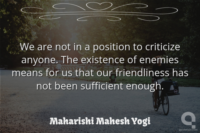 We are not in a position to criticize anyone. The existence of enemies means for us that our friendliness has not been sufficient enough.
