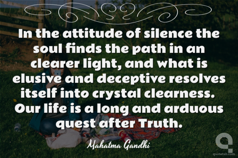 In the attitude of silence the soul finds the path in an clearer light, and what is elusive and deceptive resolves itself into crystal clearness. Our life is a long and arduous quest after Truth.
