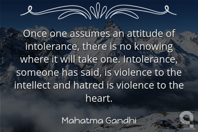 Once one assumes an attitude of intolerance, there is no knowing where it will take one. Intolerance, someone has said, is violence to the intellect and hatred is violence to the heart.