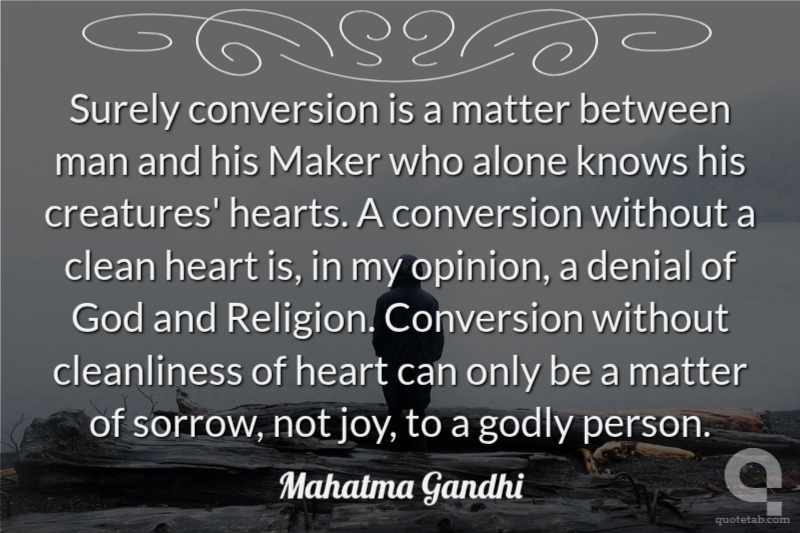 Surely conversion is a matter between man and his Maker who alone knows his creatures' hearts. A conversion without a clean heart is, in my opinion, a denial of God and Religion. Conversion without cleanliness of heart can only be a matter of sorrow, not joy, to a godly person.