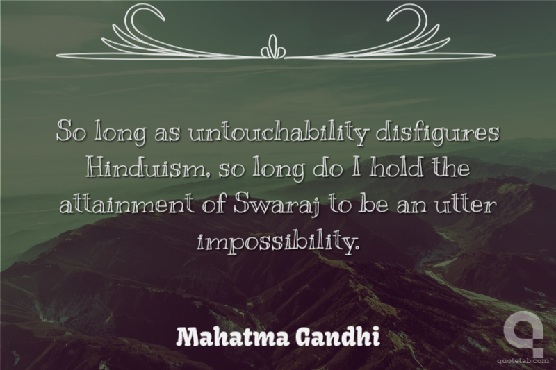 So long as untouchability disfigures Hinduism, so long do I hold the attainment of Swaraj to be an utter impossibility.