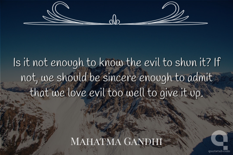 Is it not enough to know the evil to shun it? If not, we should be sincere enough to admit that we love evil too well to give it up.