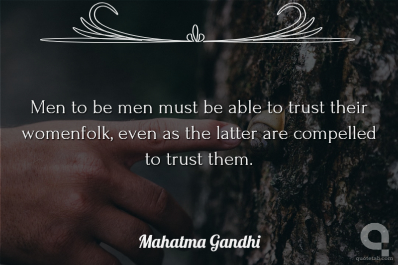 Men to be men must be able to trust their womenfolk, even as the latter are compelled to trust them.