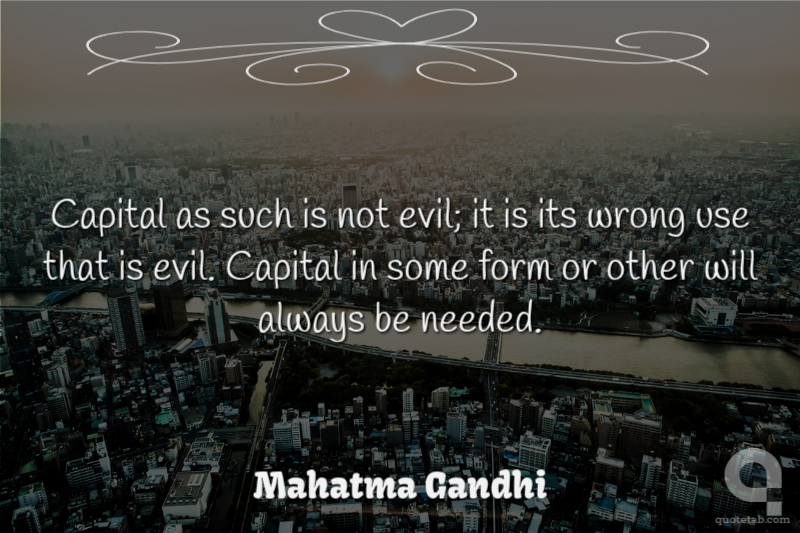Capital as such is not evil; it is its wrong use that is evil. Capital in some form or other will always be needed.