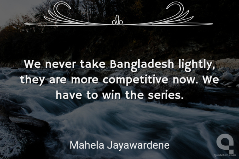 We never take Bangladesh lightly, they are more competitive now. We have to win the series.