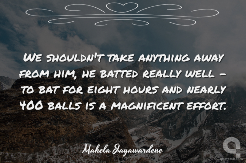 We shouldn't take anything away from him, he batted really well - to bat for eight hours and nearly 400 balls is a magnificent effort.