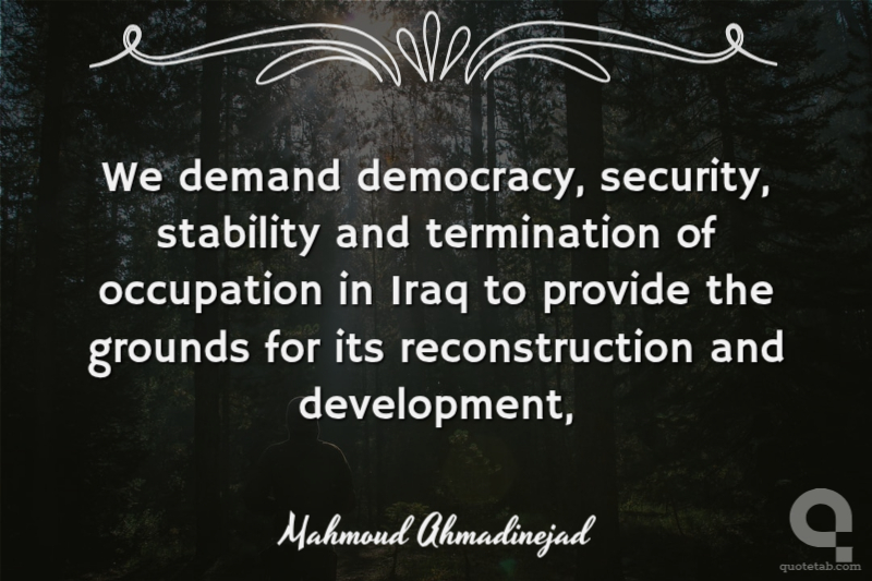 We demand democracy, security, stability and termination of occupation in Iraq to provide the grounds for its reconstruction and development,