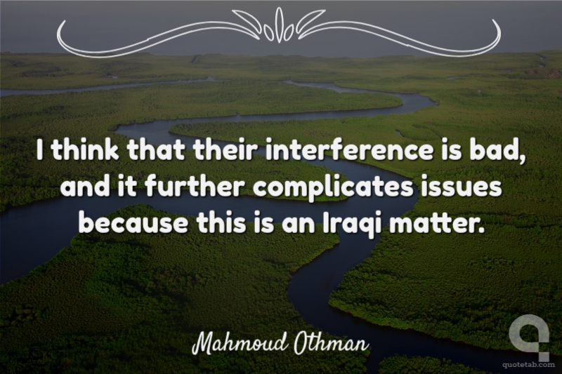 I think that their interference is bad, and it further complicates issues because this is an Iraqi matter.