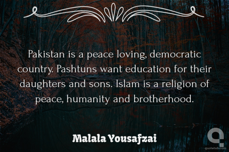 Pakistan is a peace loving, democratic country. Pashtuns want education for their daughters and sons. Islam is a religion of peace, humanity and brotherhood.